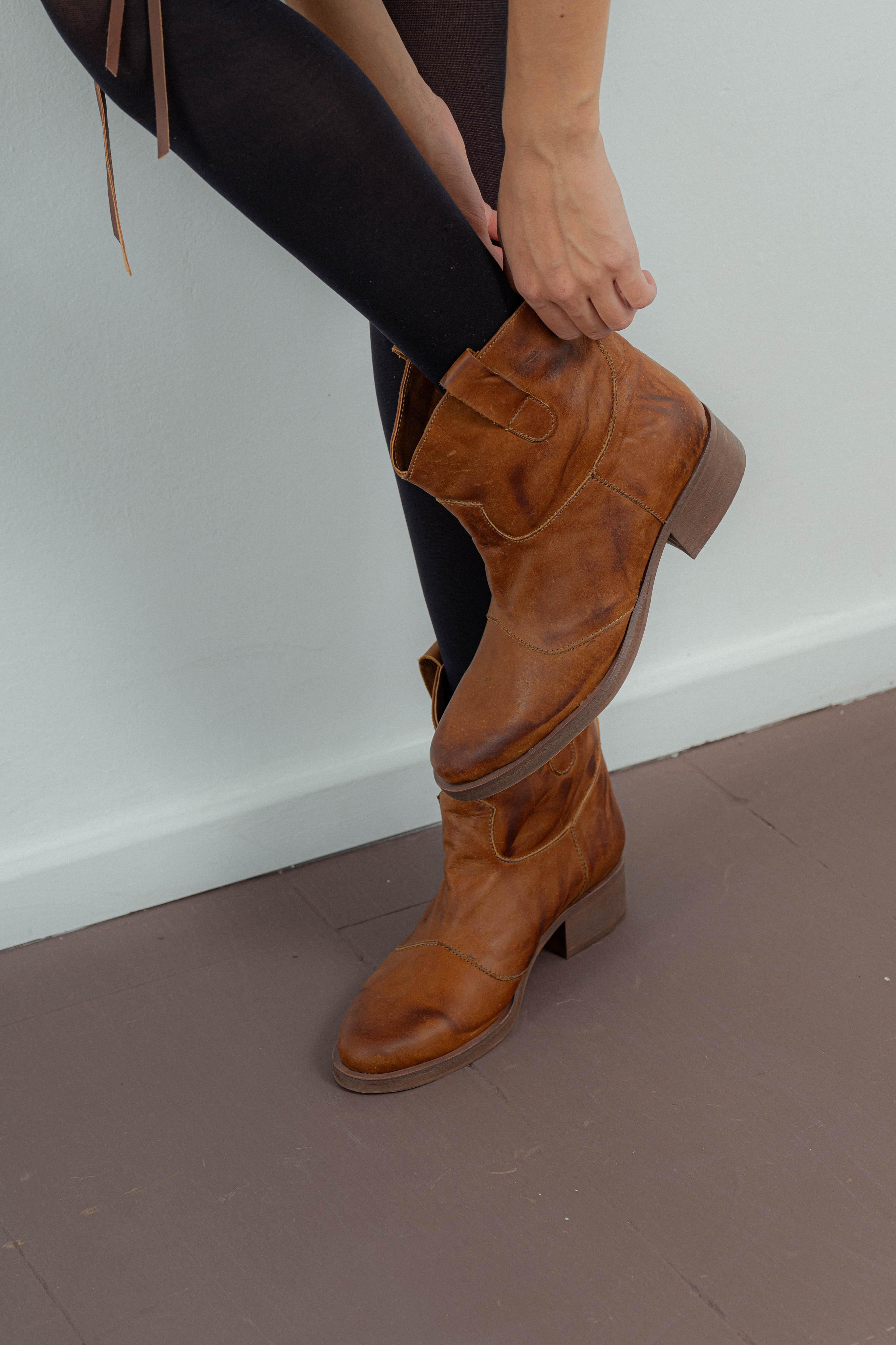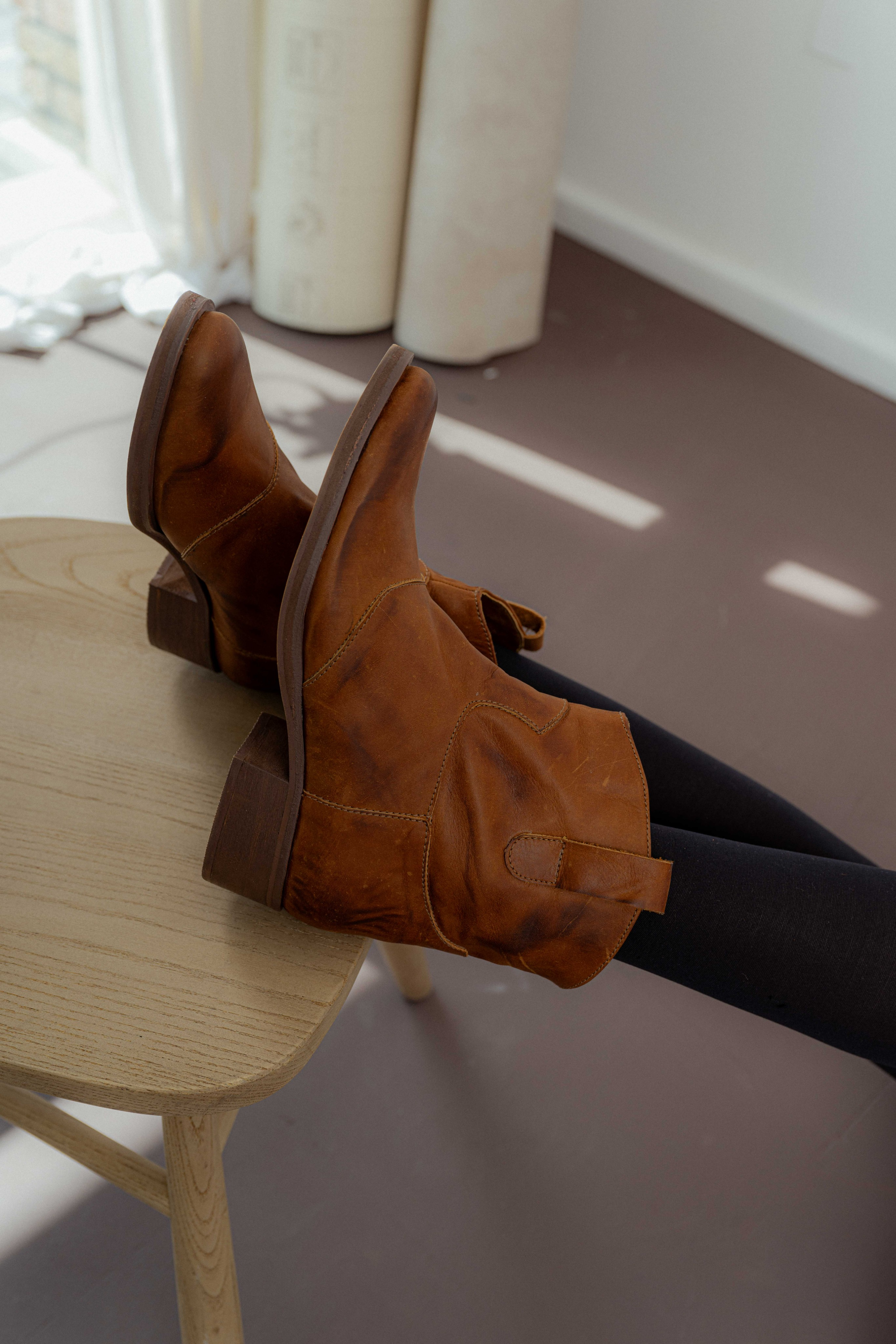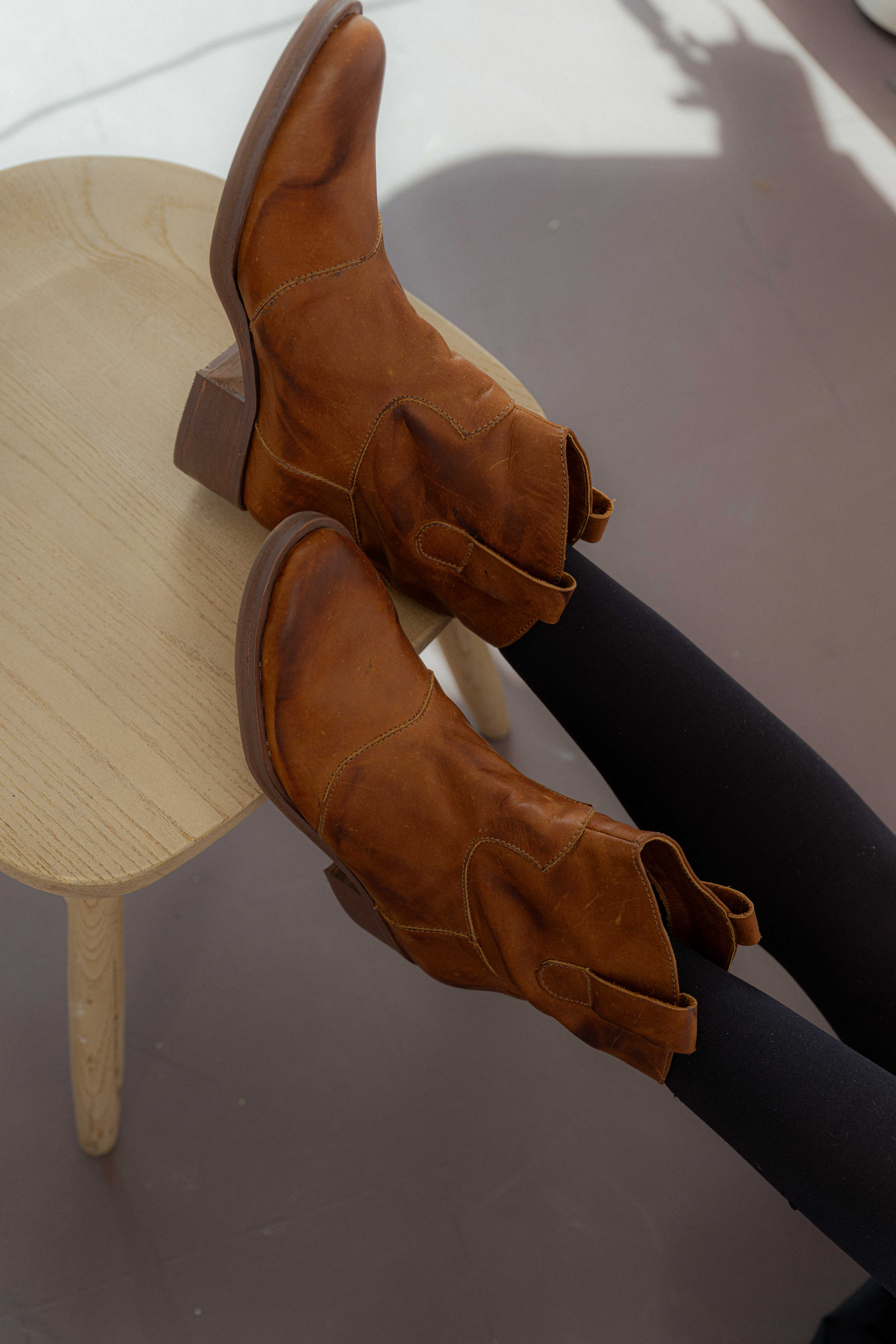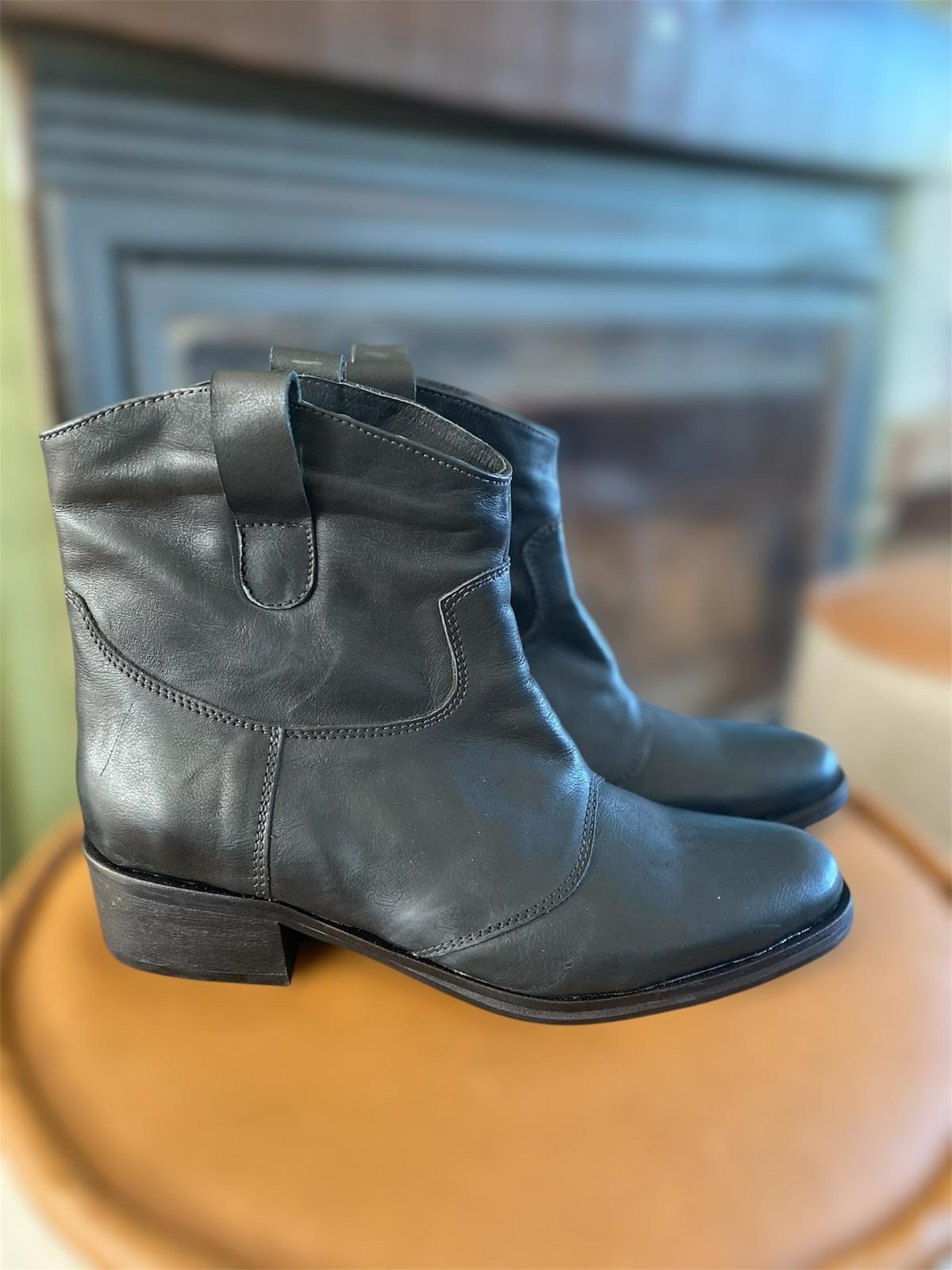 Bota corta de cuero. Basica con un calce super comodo que no necesita cierre para ponerla. Interior con plantilla de cuero acolchada. Taco de madera de 3,5 cm, suela de goma antideslizante.