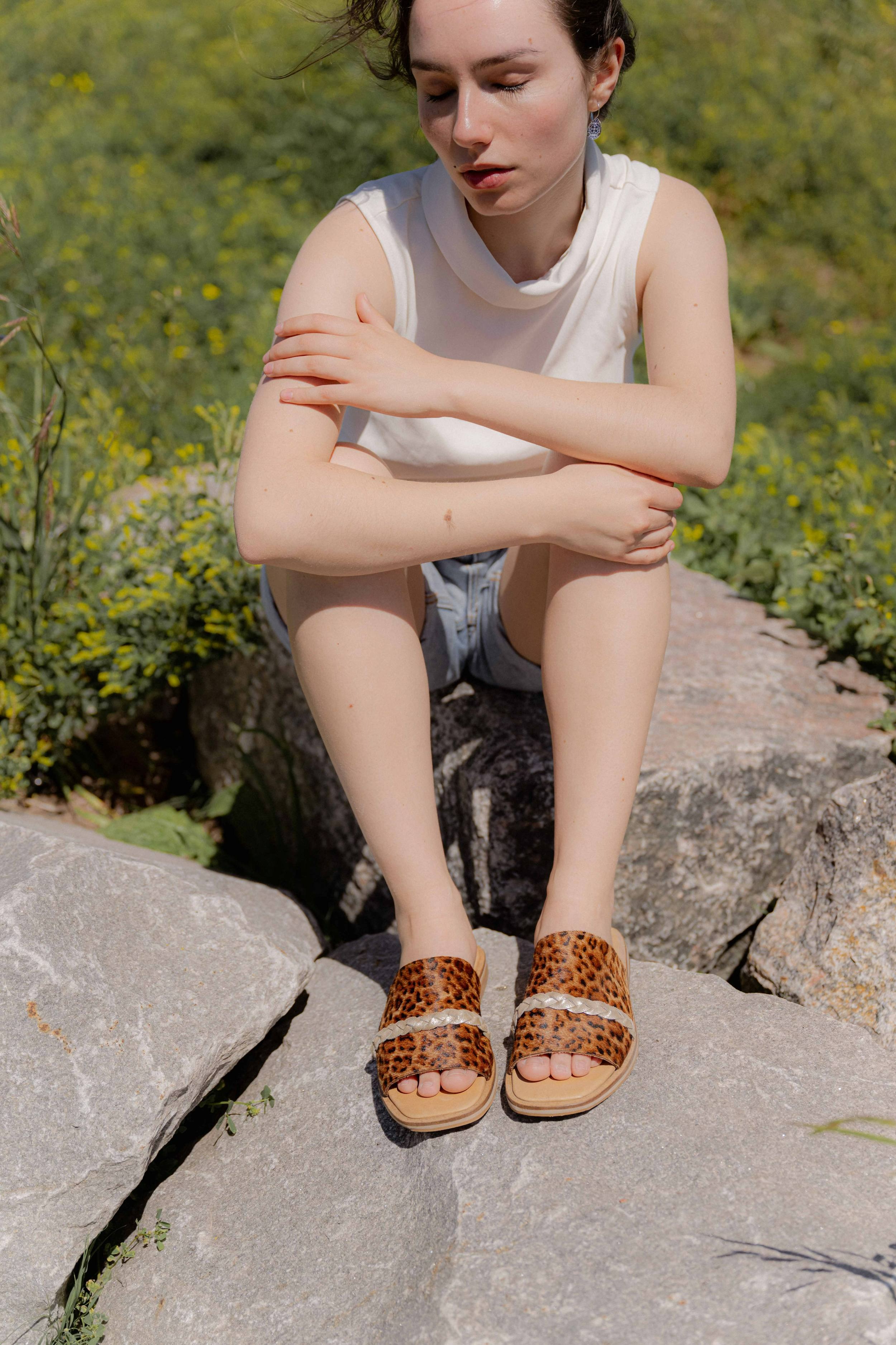 Sandalia de cuero con pelo