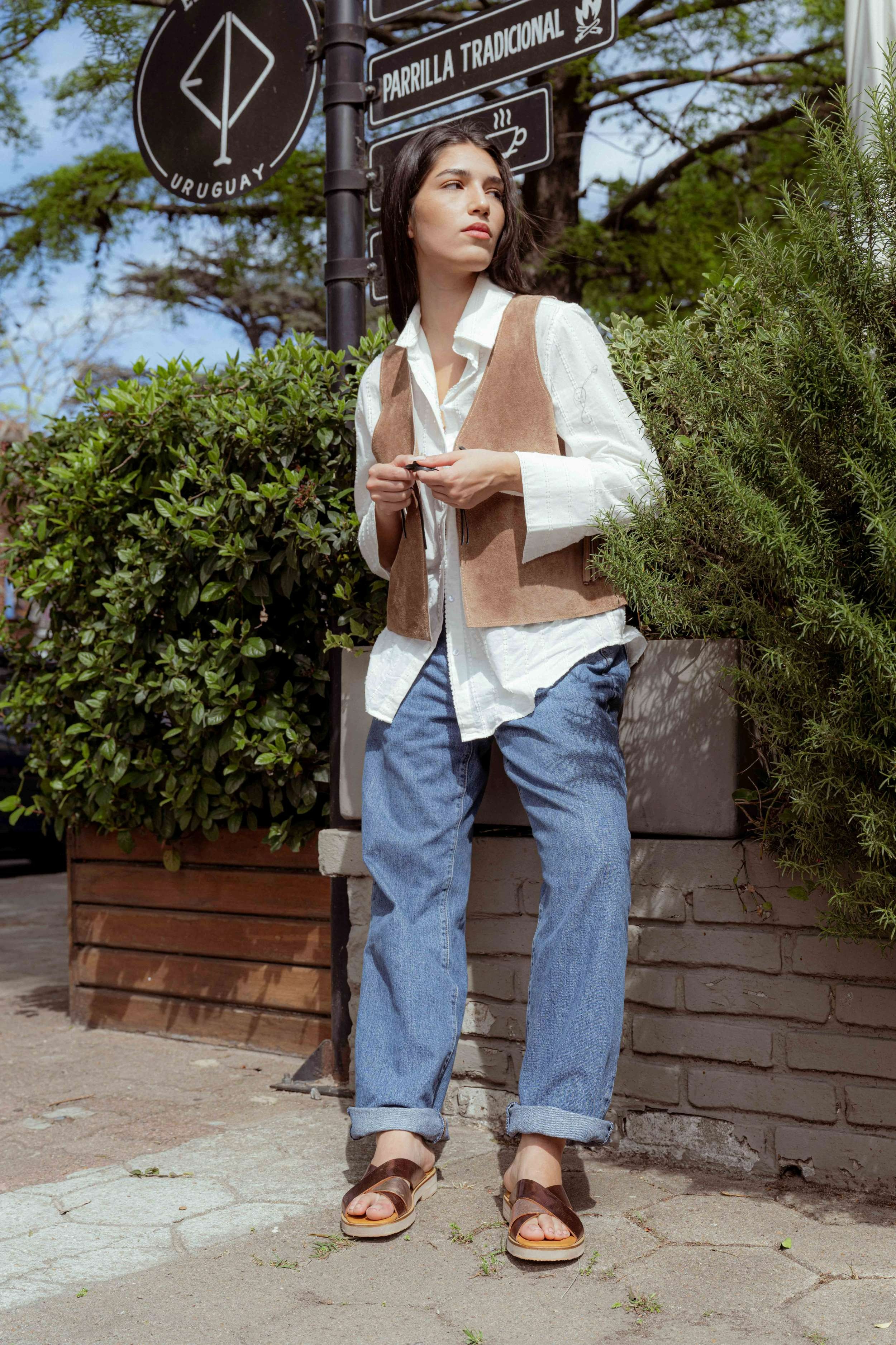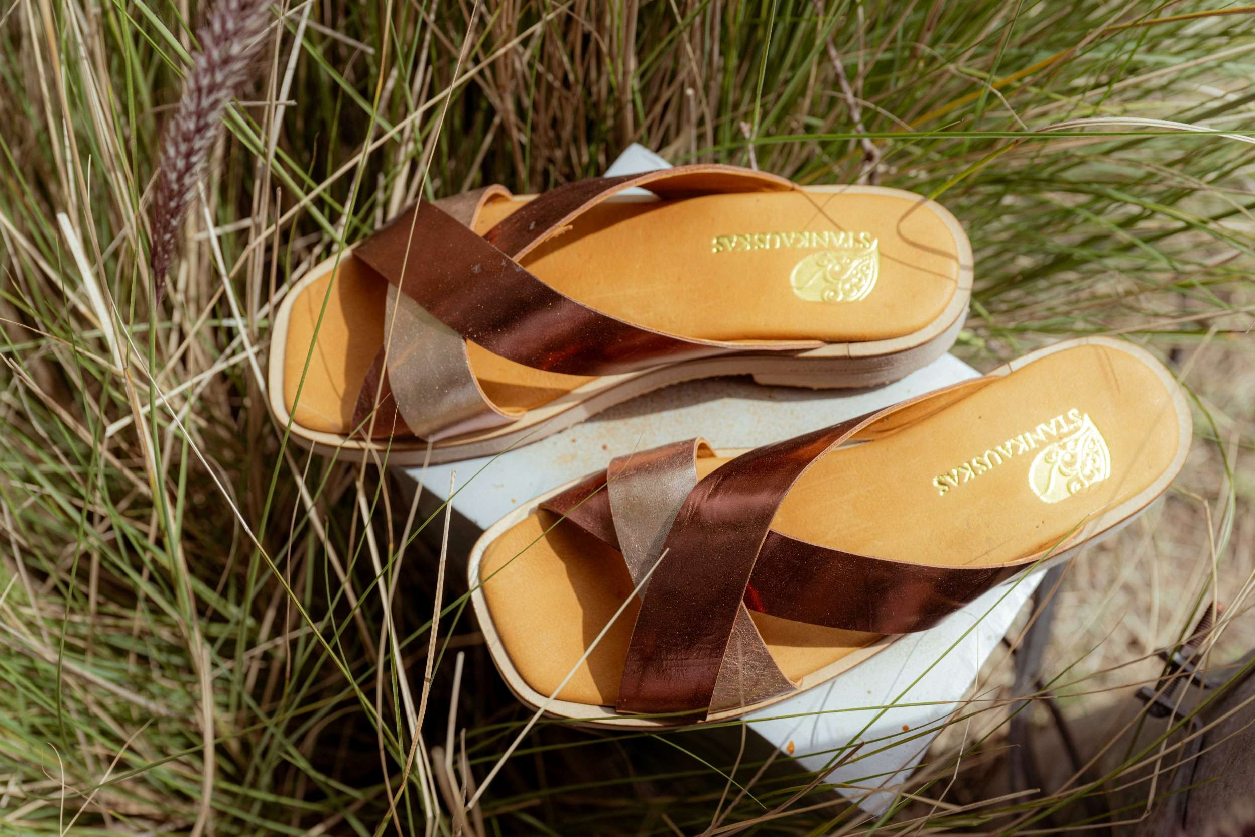 Sandalia chata de cuero, con suela de goma liviana y cómoda. Con plantilla acolchonada de cuero con taco de 2,5 cm Confeccionada en cueros metalizados