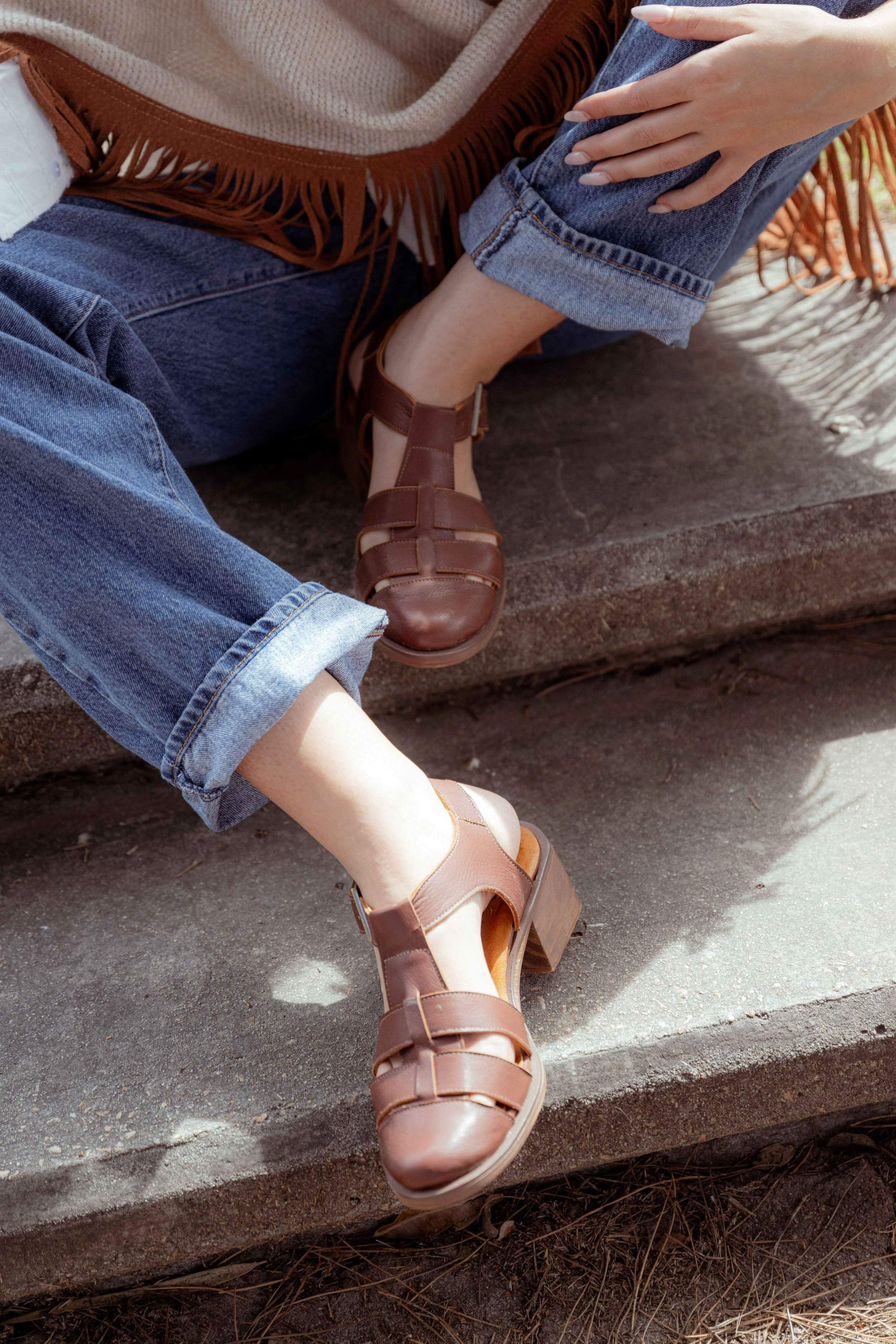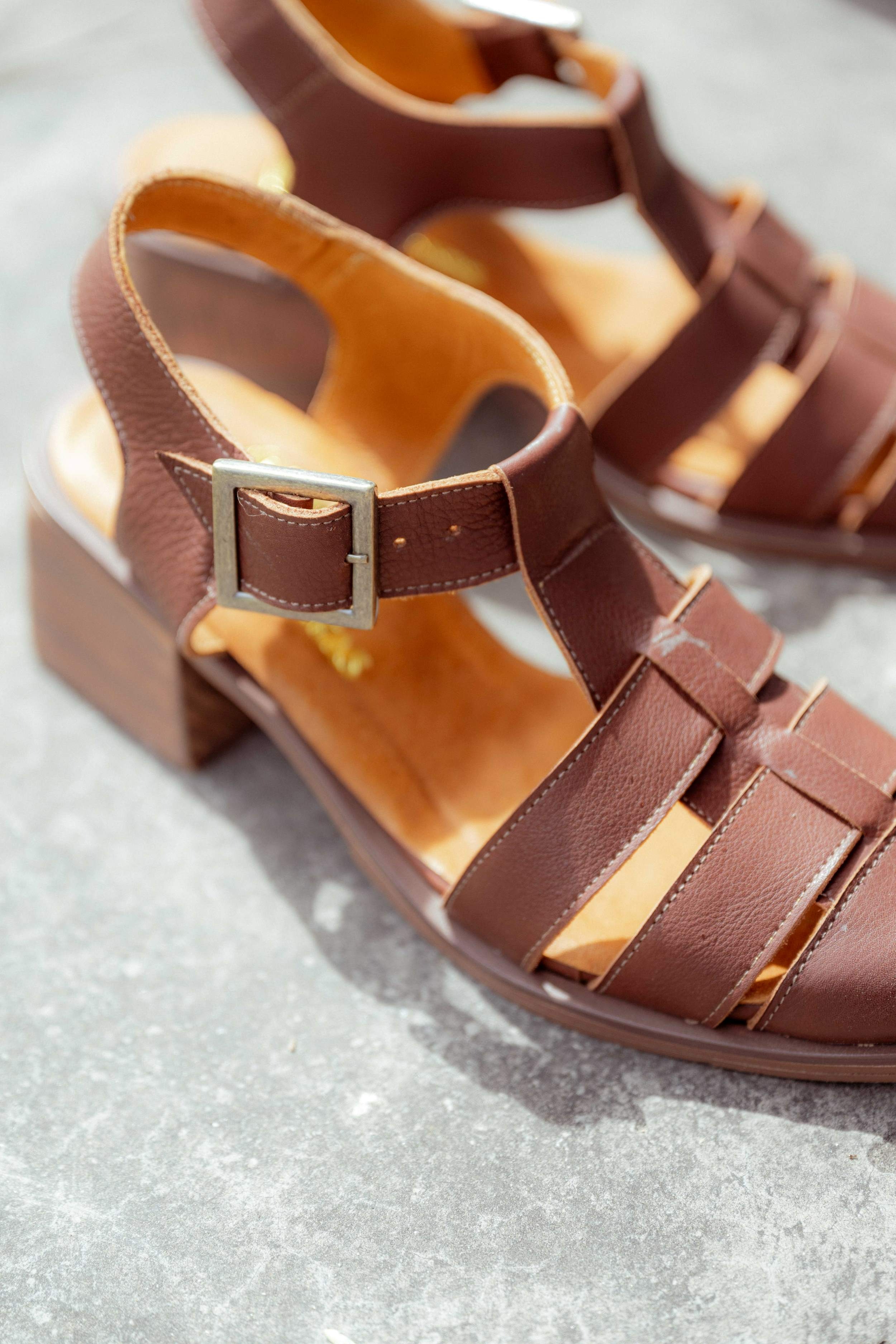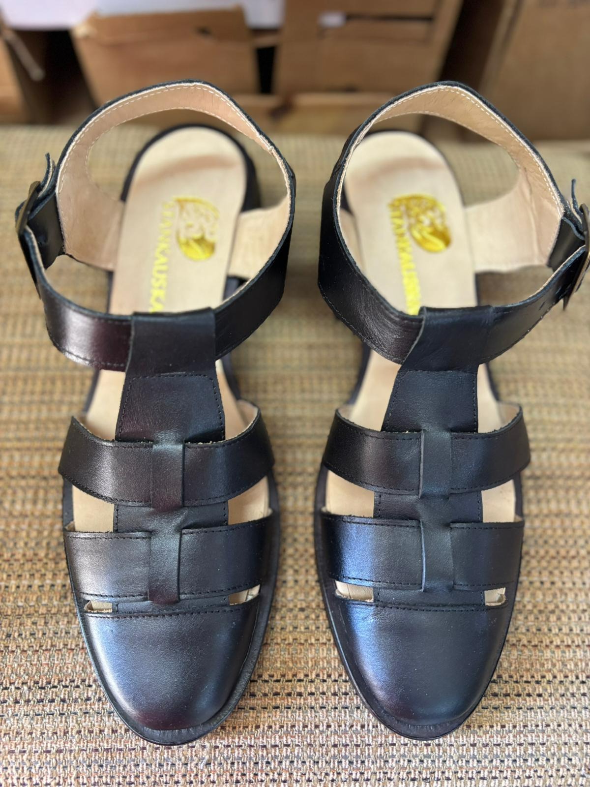 Sandalia estilo franciscana de cuero trenzado Confeccionada en cuero suavecito, con planitlla de cuero acolchada y con pulsera con hebilla regulable. Taco de madera de 4 cm. Suela de goma antideslizante.