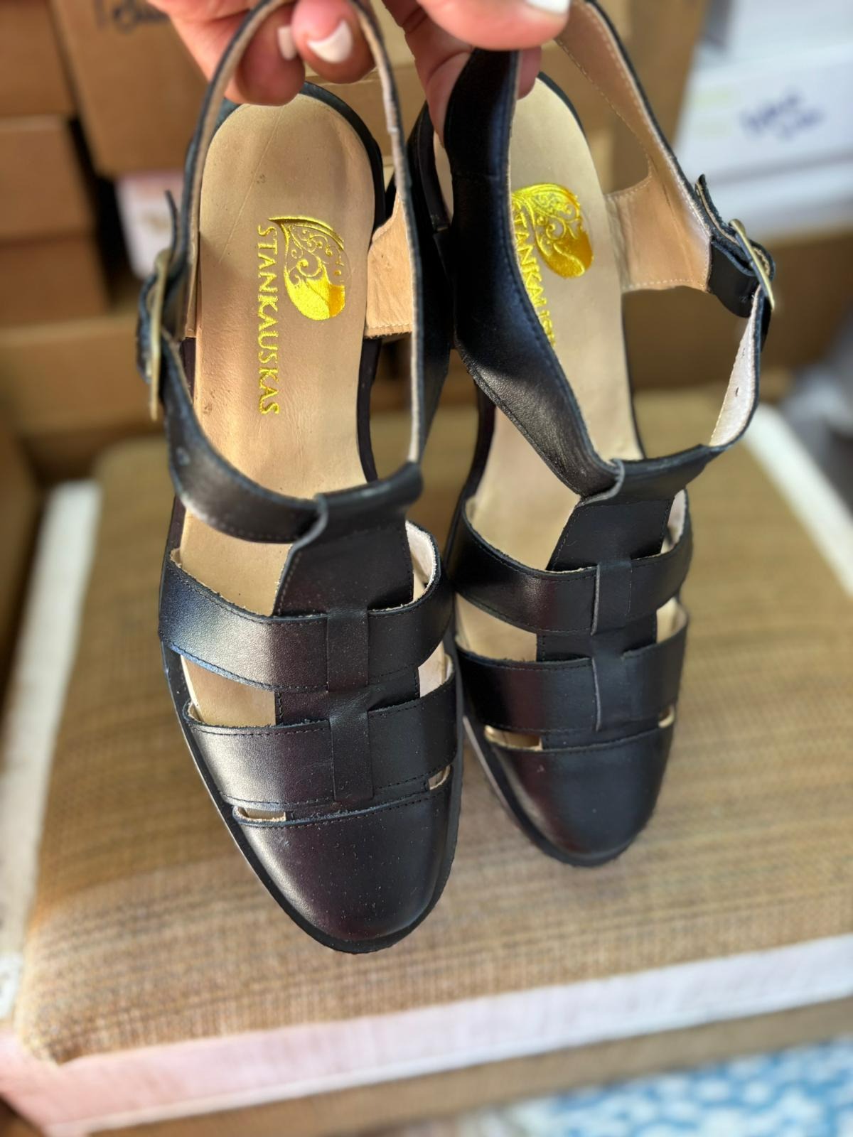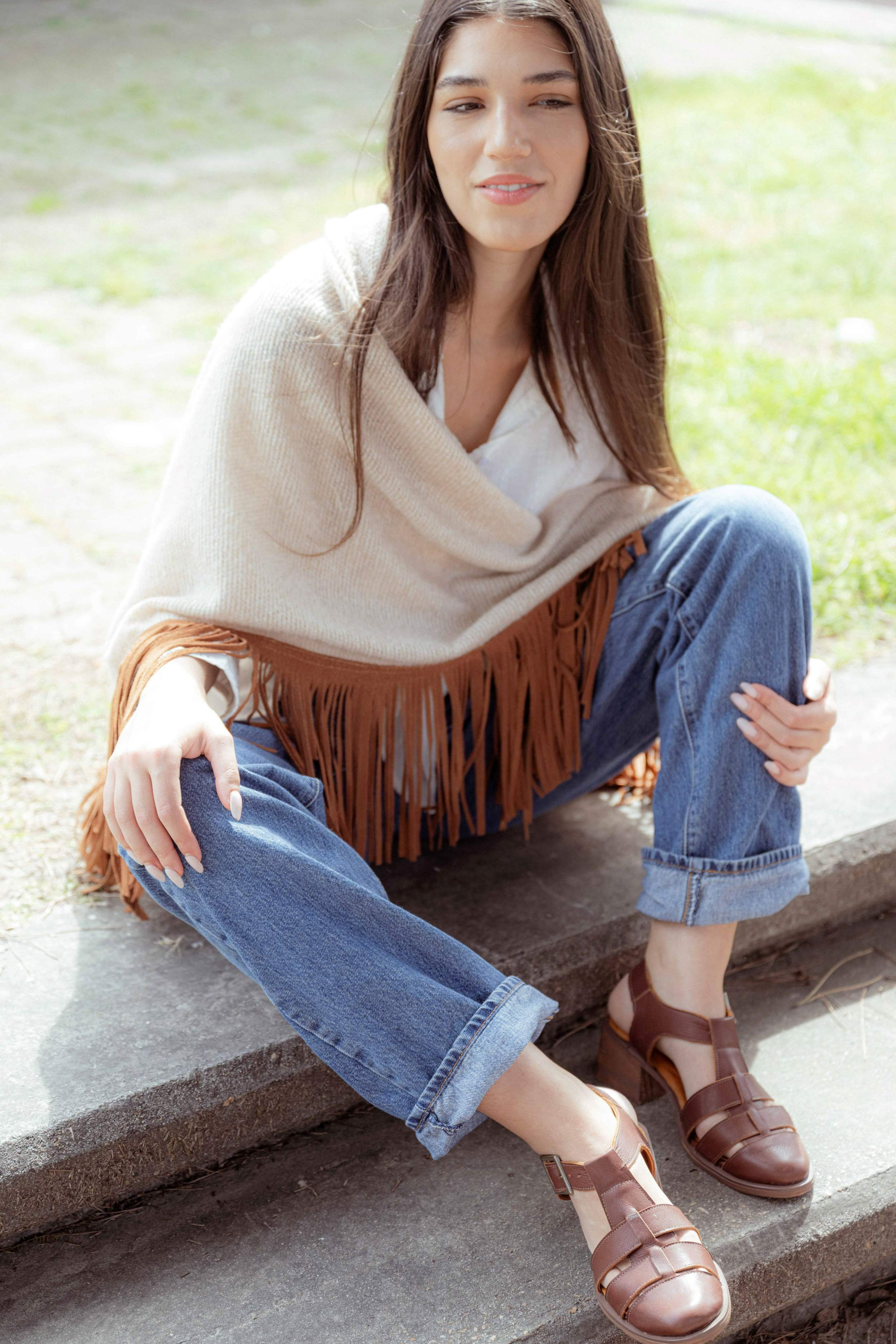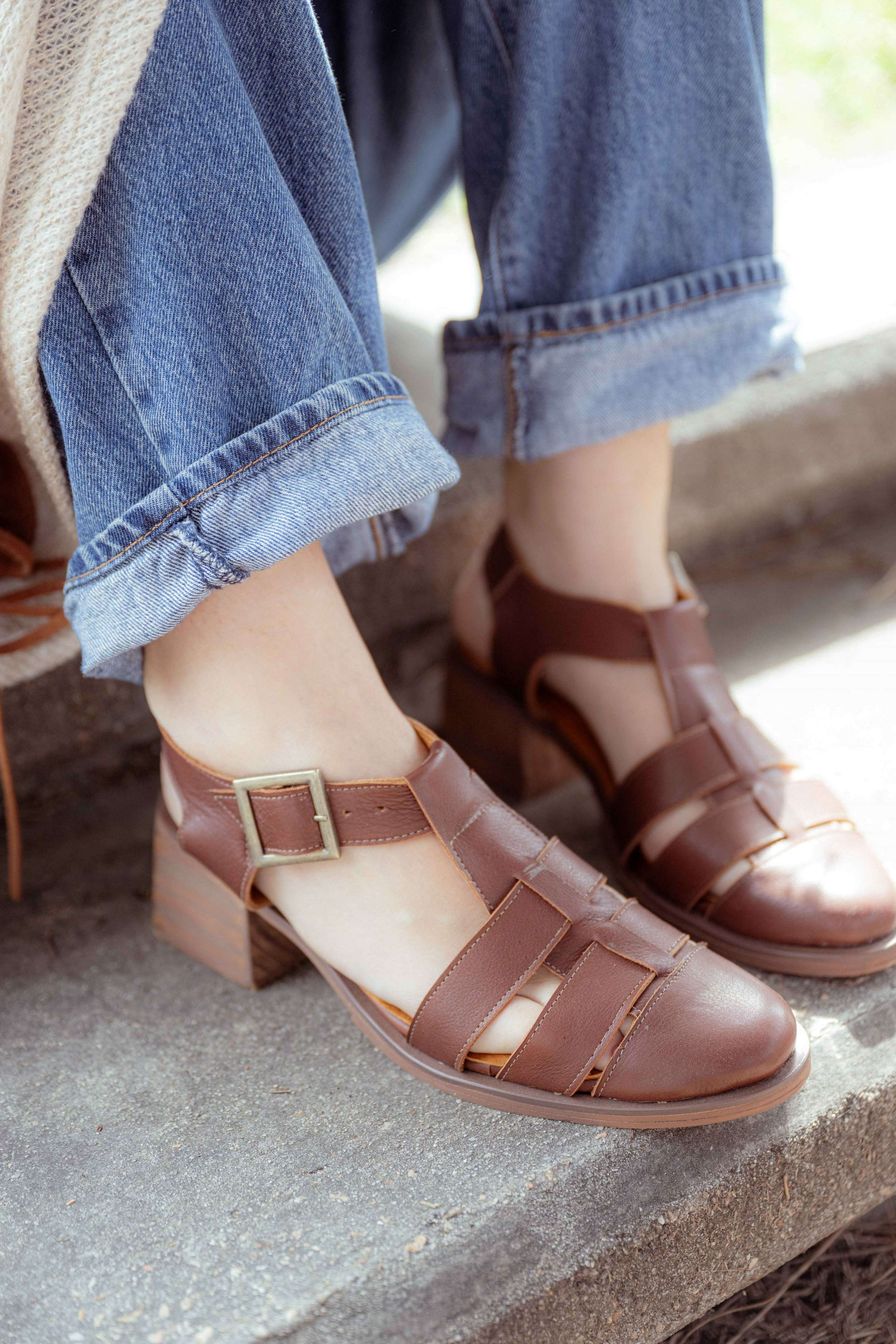 Sandalia estilo franciscana de cuero trenzado Confeccionada en cuero suavecito, con planitlla de cuero acolchada y con pulsera con hebilla regulable. Taco de madera de 4 cm. Suela de goma antideslizante.