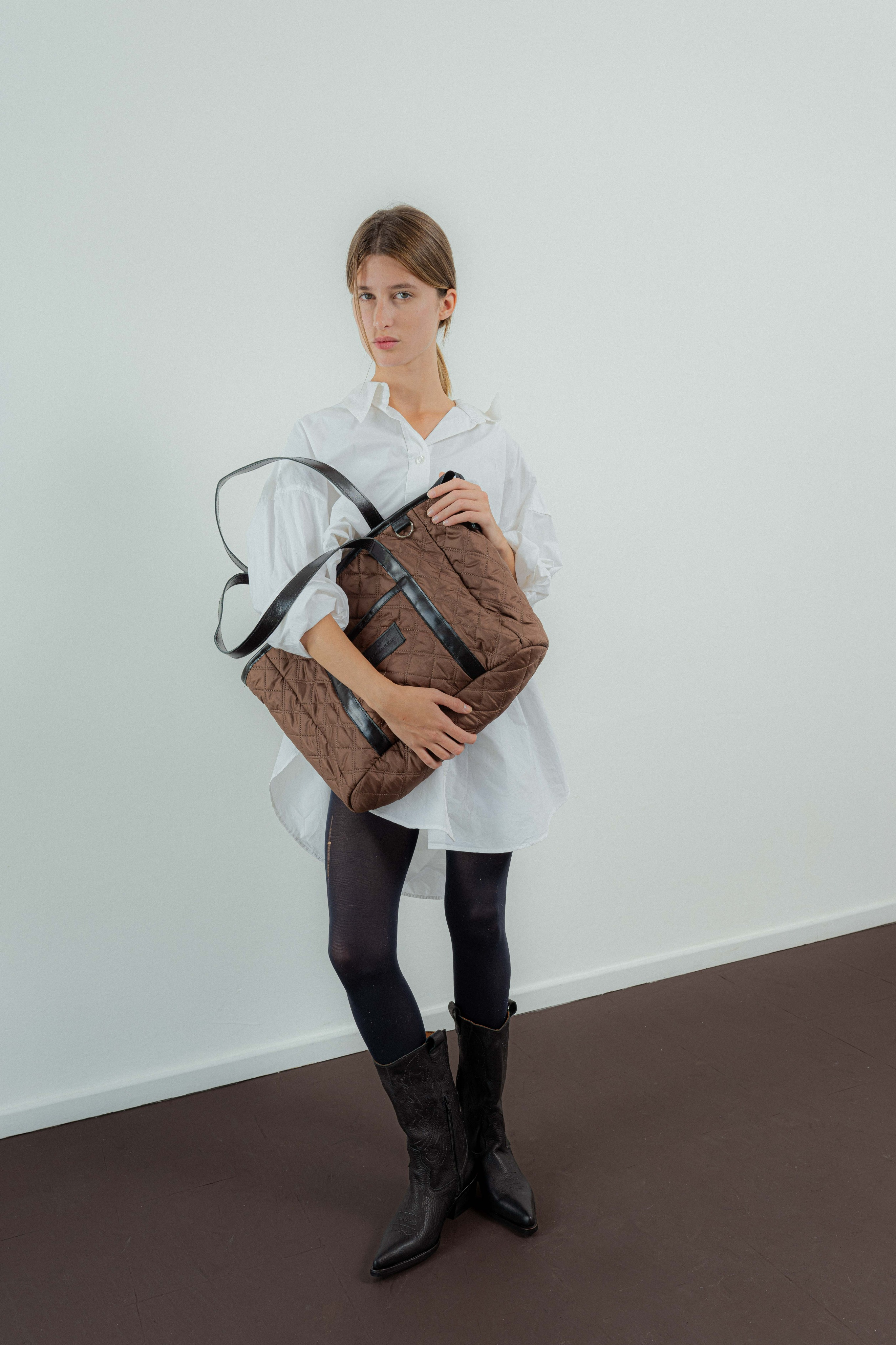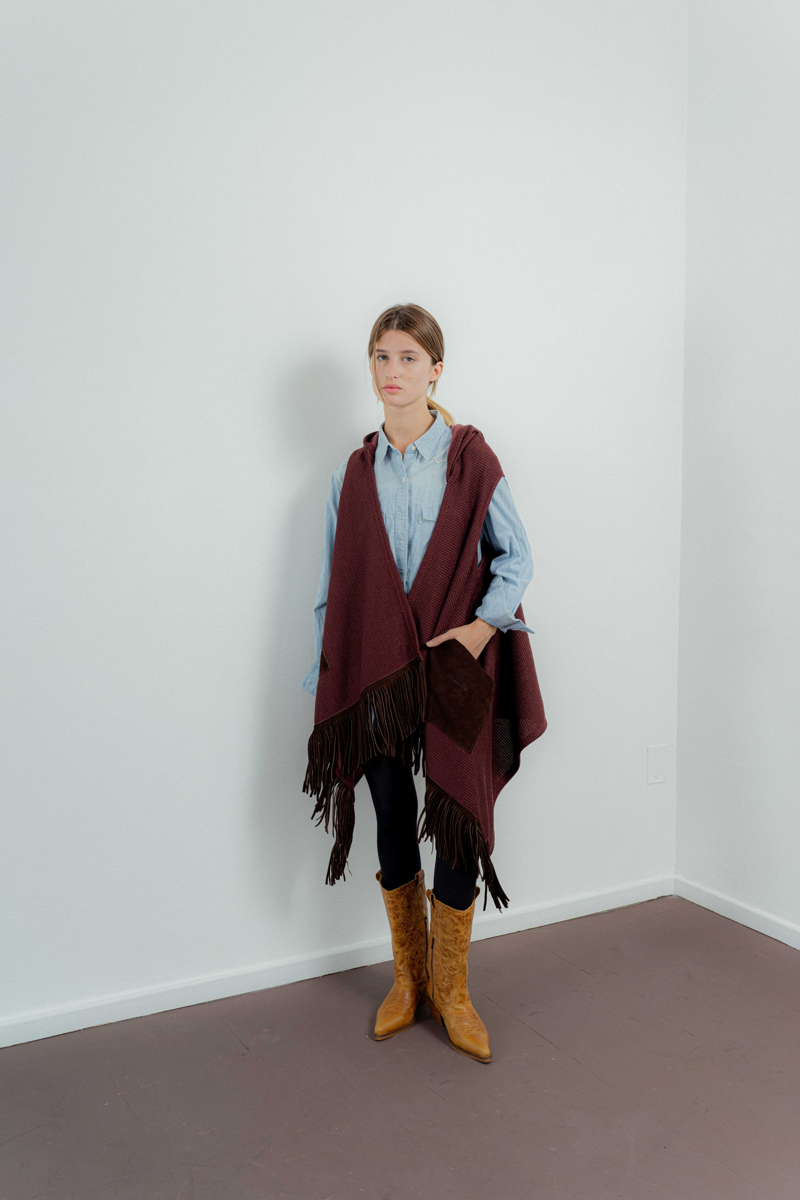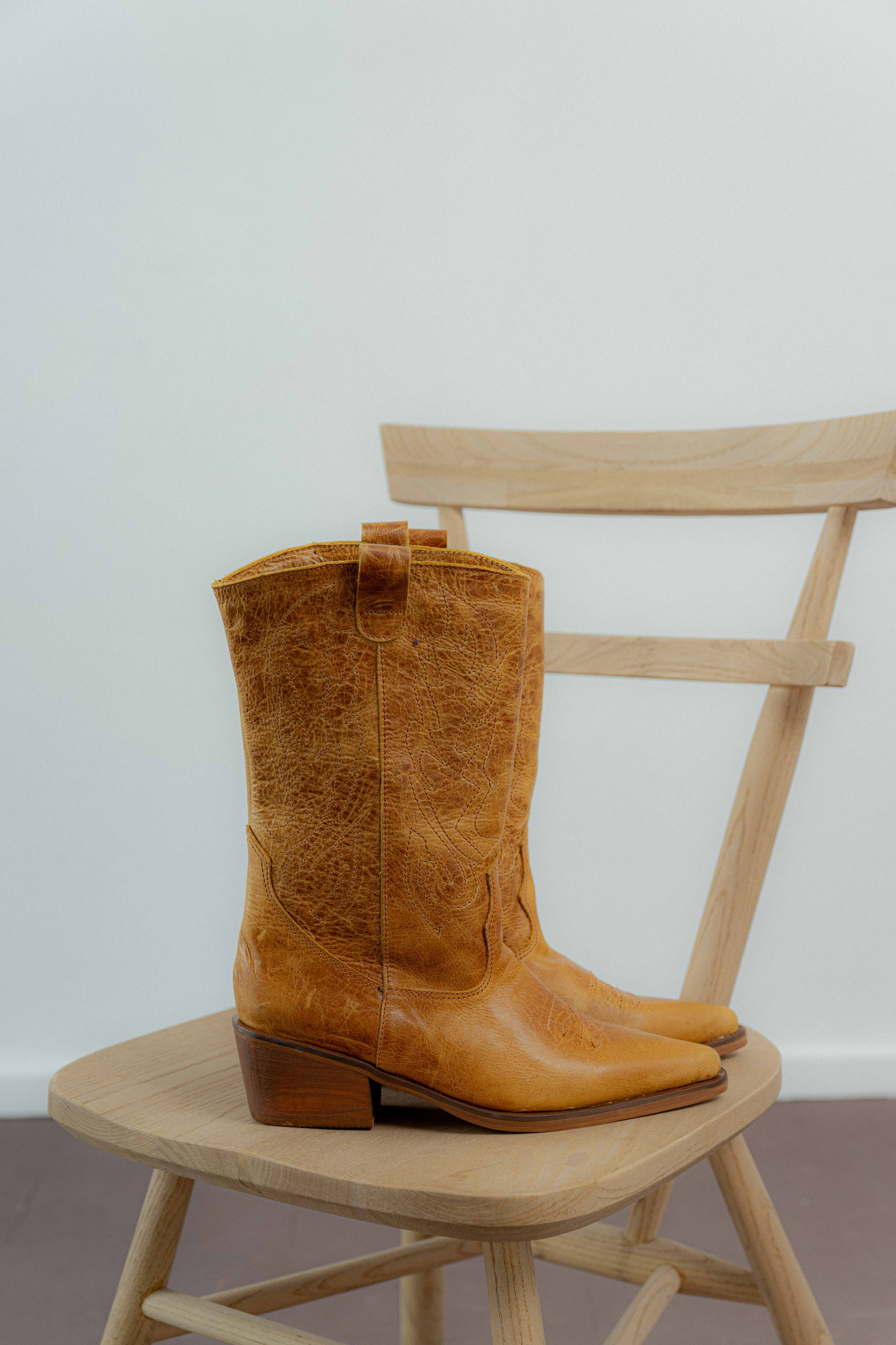 Bota de cuero, con bordado en la cana decorativo. Interior con suela de cuero acolchada, y con cana forrada. Suela de goma antideslizante y taco de madera de 5 cm.