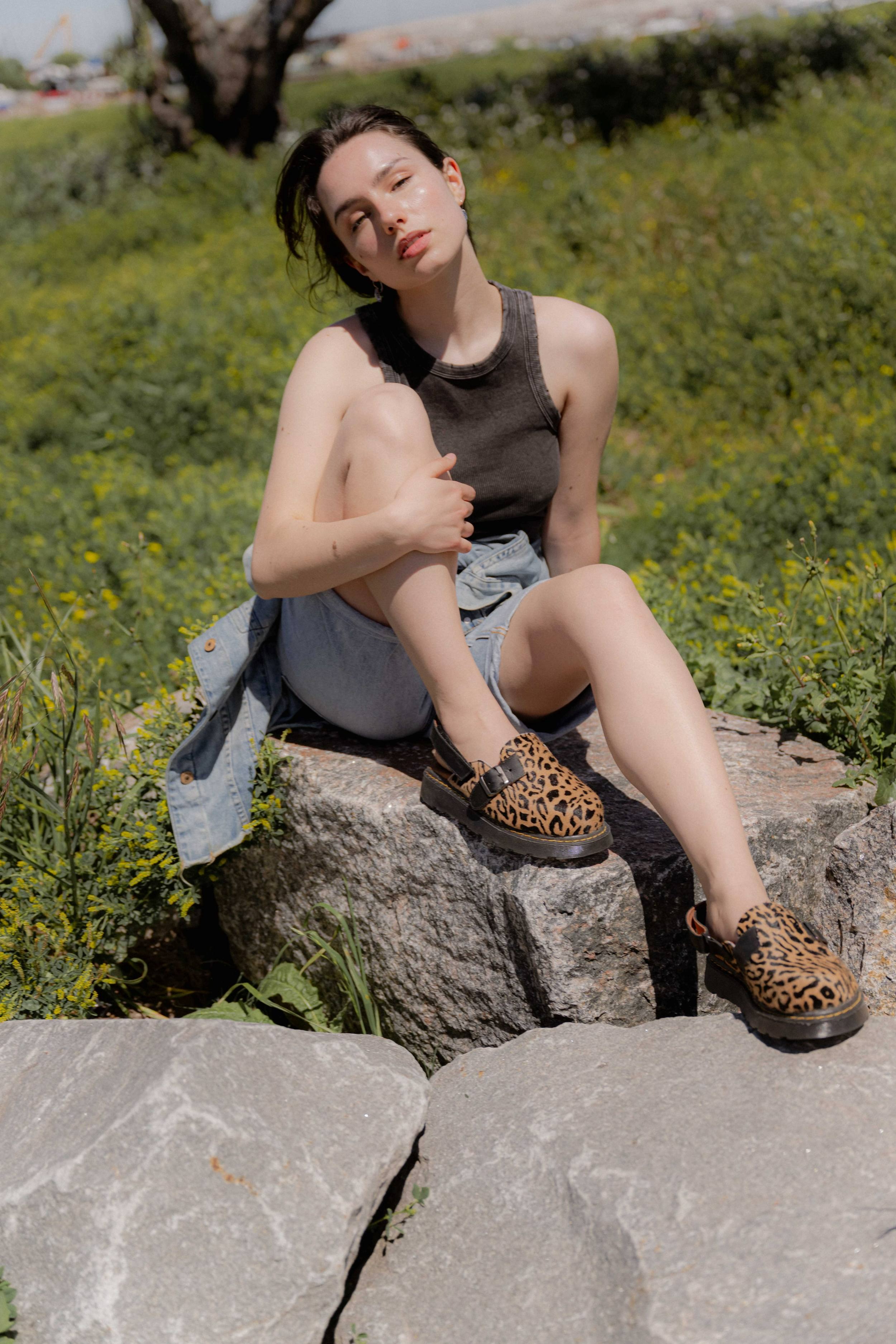 Sueco de cuero, con capellada de pelo estampado animal print, forrado de cuero. Con hebilla para ajustar el talon con velcro. Plantilla de cuero acolchada y suela de goma. Recomendamos comprar un talle menos del que usan habitualmente ya que la horma es grande.