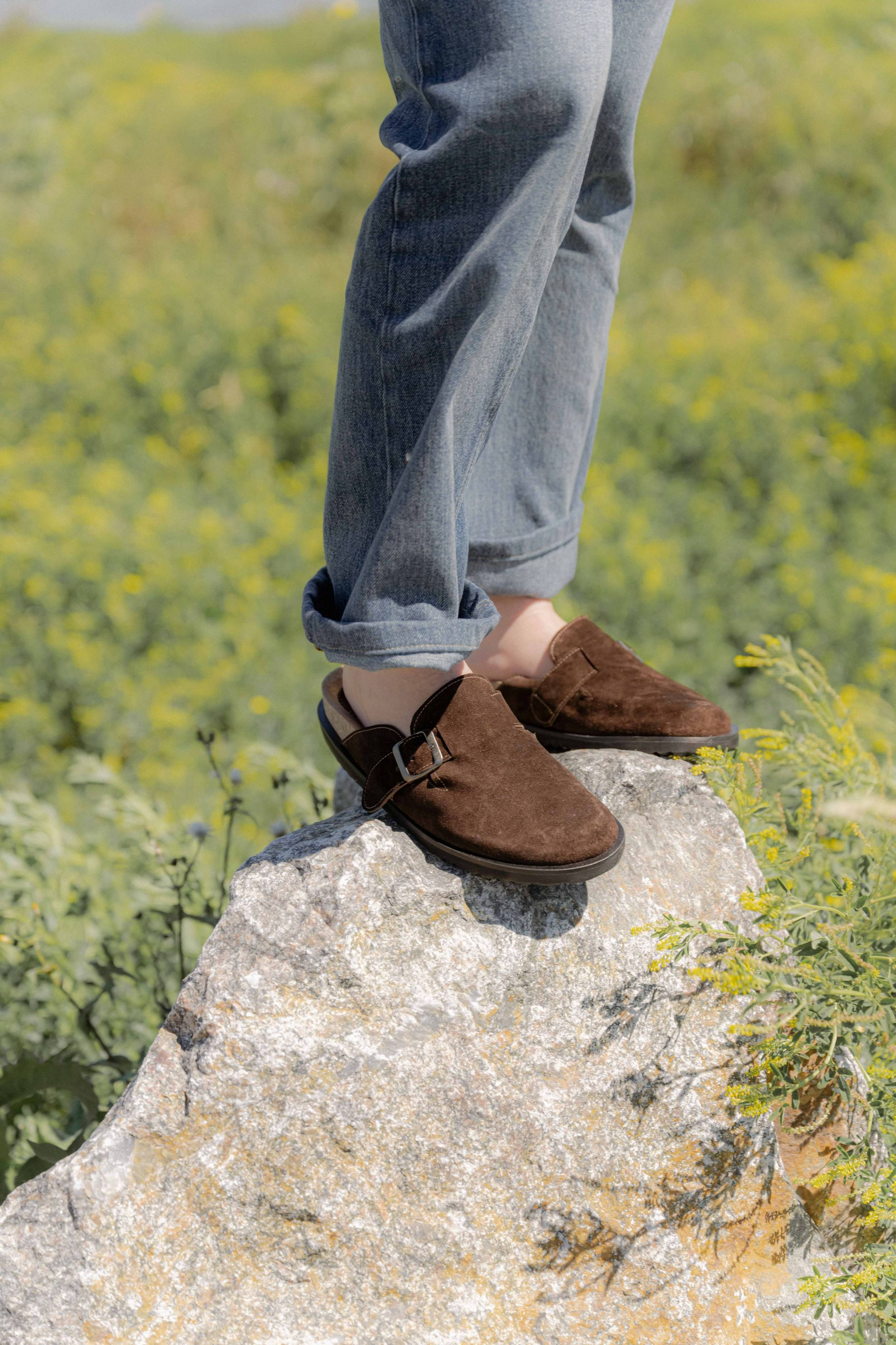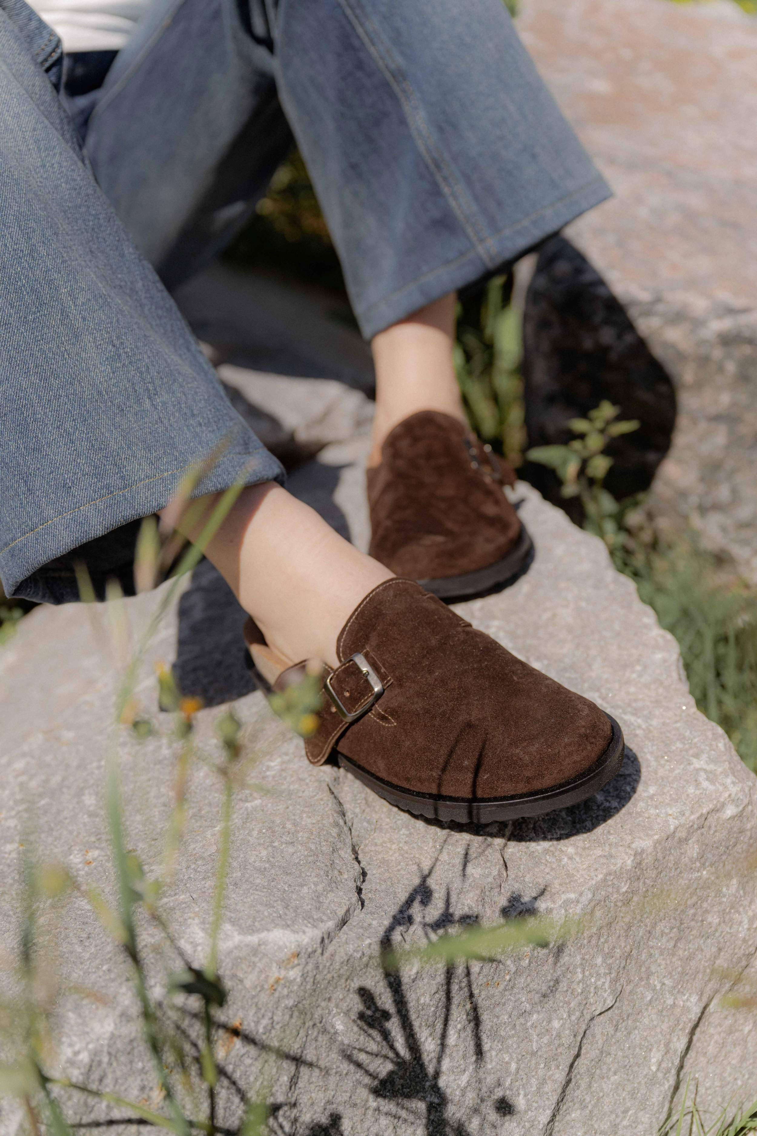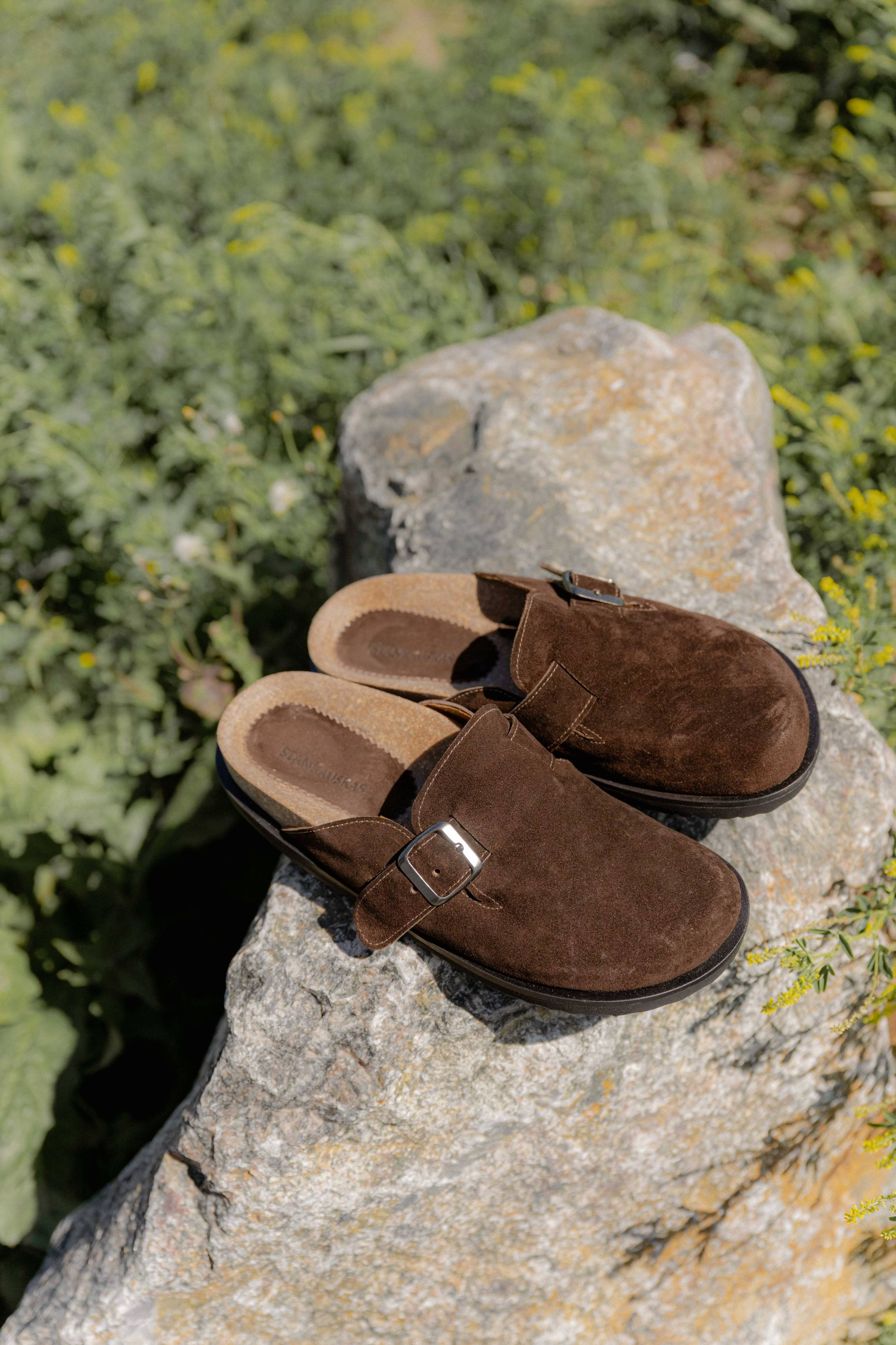 Zueco de gamuza con plantilla anatómica forrada de cuero. Con capellada 100% de gamuza natural forrada de cuero, Suela de goma antidelizante.